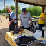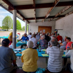 Après 3 années de disette pour cause de COVID, nous avons renoué avec la tradition et organisé notre repas autour d’un jambon, cuit à la broche avec maestria, par Jacky Savéant, accompagné du tout aussi traditionnel gratin dauphinois préparé par Paulette Botteau avec 10kg de patates à éplucher pour nourrir environ 35 affamés. Grand merci à eux.