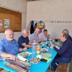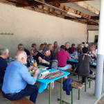 Après 3 années de disette pour cause de COVID, nous avons renoué avec la tradition et organisé notre repas autour d’un jambon, cuit à la broche avec maestria, par Jacky Savéant, accompagné du tout aussi traditionnel gratin dauphinois préparé par Paulette Botteau avec 10kg de patates à éplucher pour nourrir environ 35 affamés. Grand merci à eux.