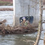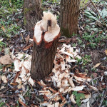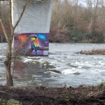 Jean nous montre de beaux graffitis sur les piliers d’ un pont et un peu plus loin un tronc d’arbre rongé par un castor.