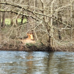 Le climat est bien paisible dans cette gorges, Christine nous montre le travail des castors en bordure de rivière, un arbre de bonne taille est entamé au 2/3, normalement, quand le travail sera achevé, il devrait tomber dans la Sioule !