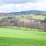 Nous avons pris de la hauteur et le regard s’échappe sur les vallonnements environnant. Les dominantes vertes sont ponctuées par les alignements d’arbres et leurs ombres, soulignés par les bourgeons naissants.