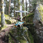 En pleine forêt une stèle. Jean nous explique qu’ici il y a eu en 1972 un grave accident d avion qui a fait 60 morts.