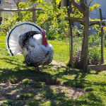 Plus loin avant de regagner le village, dans la pelouse d’une basse cour, un dindon goguenard observe notre déambulation en jouant de l’éventail !