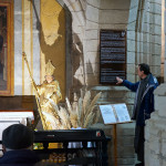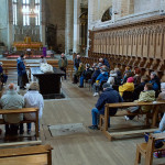 Notre groupe, respectueux du lieu majestueux ( ancienne abbaye bénédictine crée au 11ème siècle ), disposé autour de la sépulture du pape Clément XI, écoute avec attention l’historique développé largement par notre guide religieux.