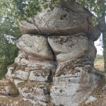 Les bois de Peyrolles offrent différents paysages: vallon, petits et grands chênes, de la bruyère qui commence à fleurir. Sur le parcours certains cueillent des mûres, d’autres des prunes sauvages. Malgré le dénivelé les bavardages vont bon train. Mais le but de cette randonnée est de voir le rocher Jayant un mégalithe imposant.