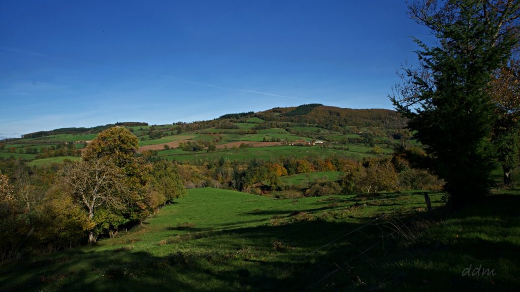 La montagne Bourbonnaise a adopté sa parure d’automne, allumé ses feux, le soleil éclabousse du vert au jaune en passant par toutes les nuances brunes, rouges, orangées …, un enchantement pour les yeux !