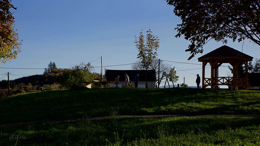 Là, Lucas fait du vélo dans la rue sous l’oeil bienveillant de sa grand mère, ou alors il rejoint le grand père qui joue aux boules avec ses amis du village, sur l’esplanade nommée «Place de la Pétanque »