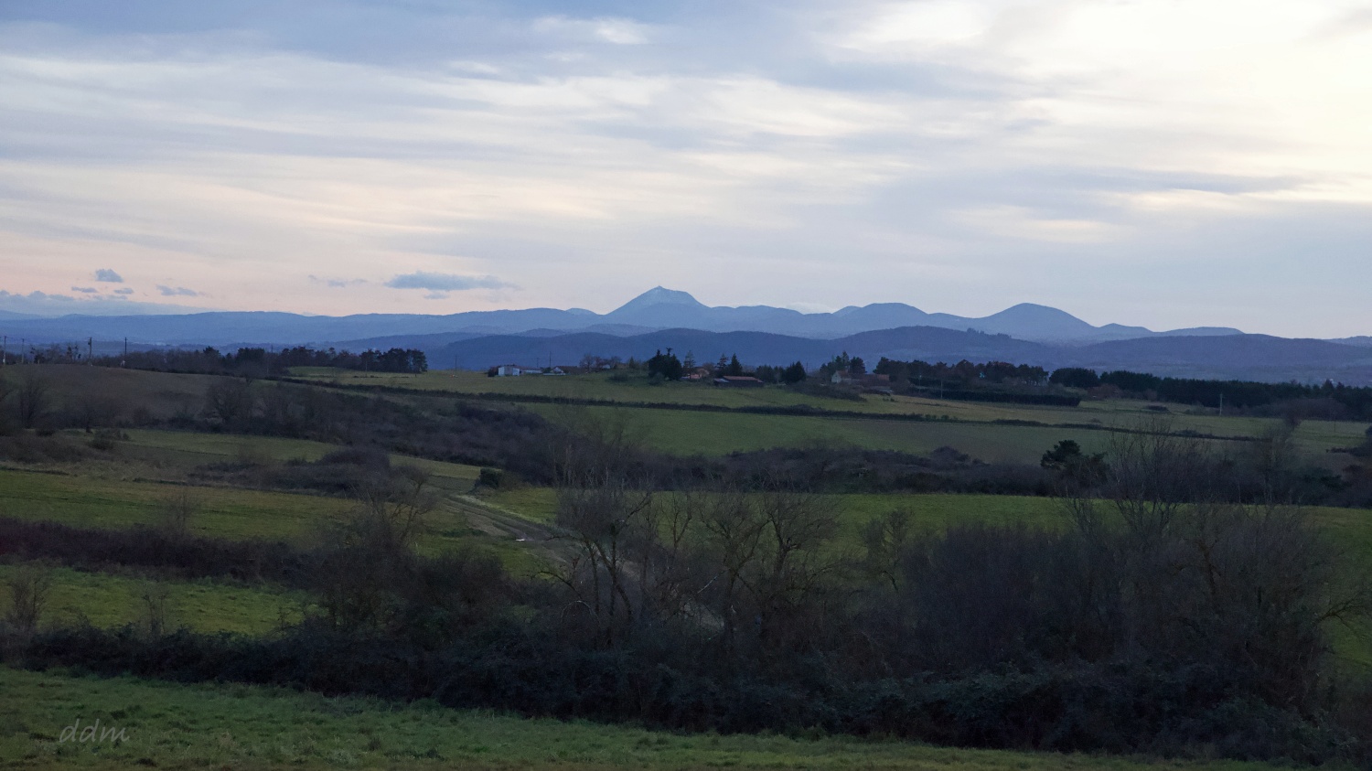 Nous nous rapprochons tranquillement de l’arrivée, avec en ligne de mire, la ligne bleue de la chaine des Puys, et la nuit, encore une fois, nous surprendra avant le retour à Bellerive !