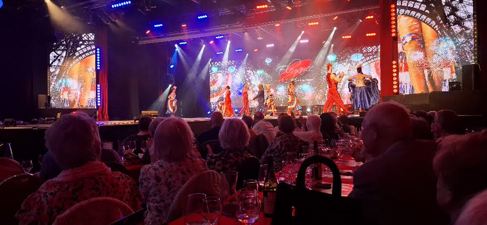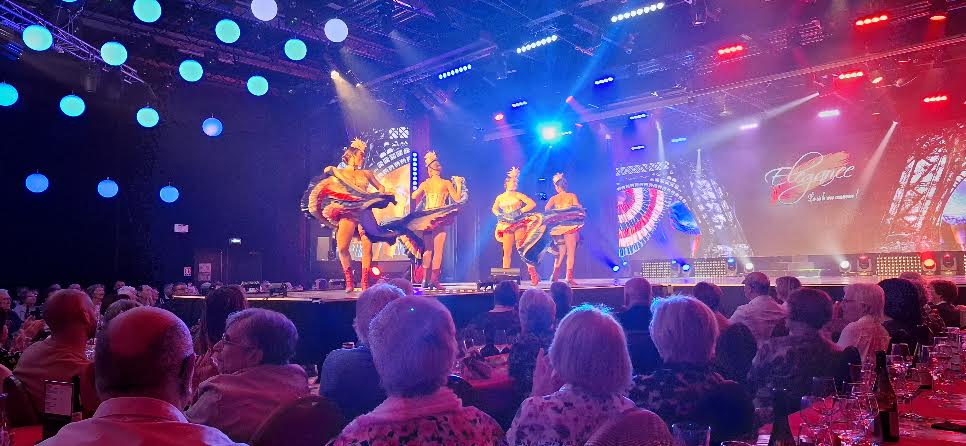 À notre arrivée, nous avons découvert le Cabaret Élégance, un lieu unique où se rencontrent la magie du spectacle et l’art de la gastronomie. Dans un cadre raffiné, les participants ont pu profiter d’un déjeuner savoureux, suivi d’un spectacle de grande qualité.