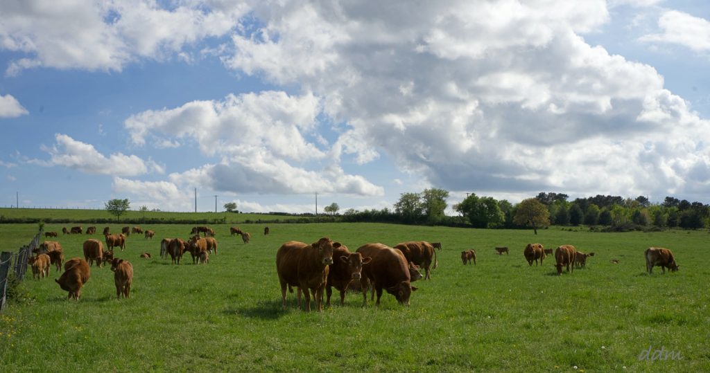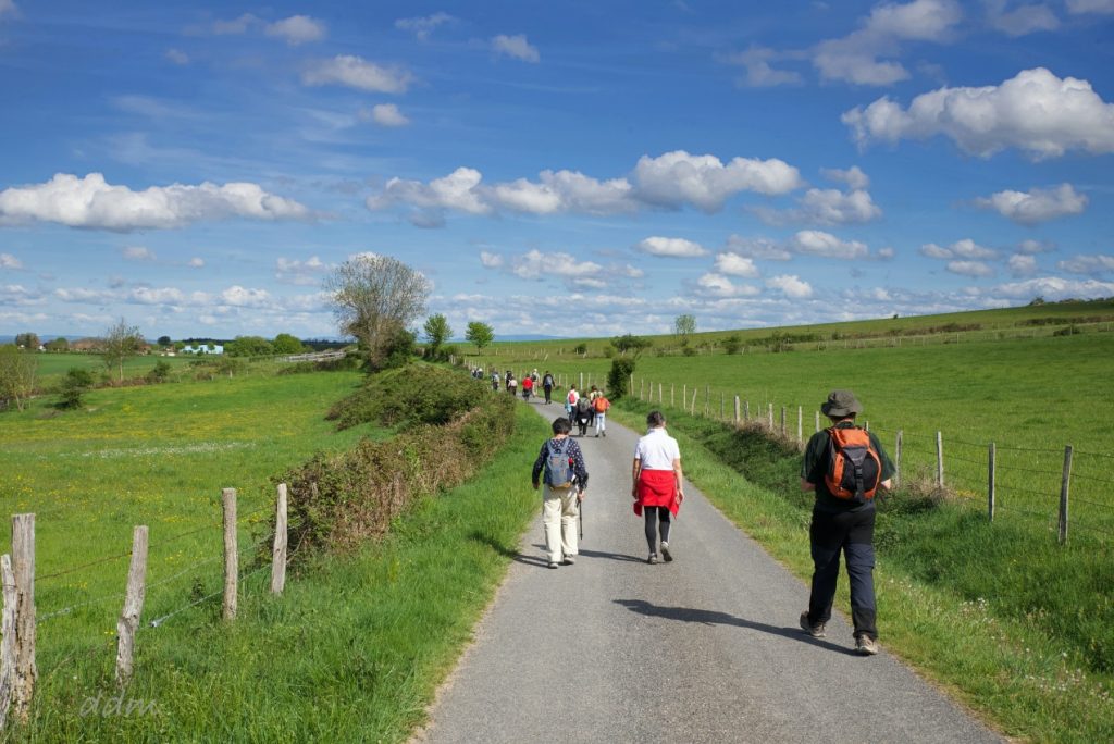 Plus loin nous retrouvons champs et pâturages avant de redescendre vers les terrasses de la Sioule pour un dernier coup d’œil sur le viaduc et puis remonter encore vers le village.