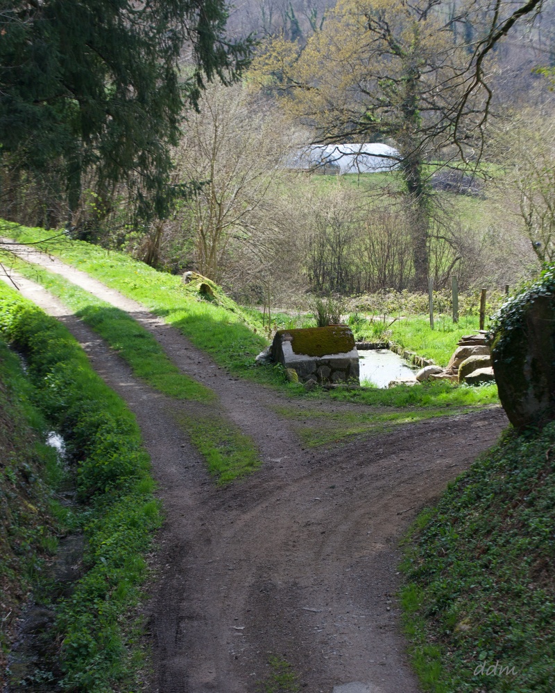 Nous traversons sur un pont, l’ancienne ligne du Tacot de la Montagne Bourbonnaise avant d’entreprendre la monté vers le bois.
