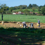 Plus loin, des ramasseurs de pomme de terre s’activent dans leur champ.