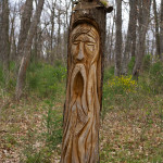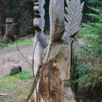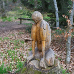De l’envie de prolonger la vie de l’arbre est né le sentier des sculptures sur souches. A l’origine de cette balade poétique, Loïc Bertrand, agent de la commune en charge des coupes sanitaires, a souhaité prolonger la vie des arbres et surprendre petits et grands. En 2015, il se lance, équipé de sa tronçonneuse, dans une première sculpture sur souche remarquée des randonneurs. D’autres œuvres viennent ensuite peupler la forêt … un ours, une marmotte, et même une statue de l’île de Pâques ! Ou plus récemment encore un loup et un lutin.